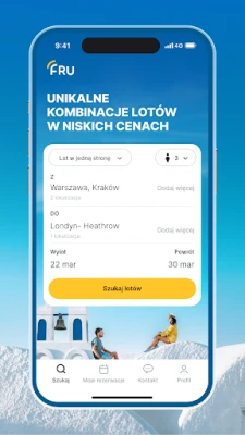 Kujuta ette maailma, kus unistuste reis algab vaid paari puudutusega. FRU muudab selle reaalsuseks, tuues sinu käeulatusse kümnete lennufirmade, nagu Wizz Air, Ryanair, LOT, Lufthansa ja Emirates, pakkumised. Loodud kirglike reisijate poolt teistele reisihuvilistele, koondab FRU ühte elegantsesse rakendusse kõik, mida vajad odavate ja mugavate lendude leidmiseks. Unusta lõputu surfamine erinevatel lehekülgedel – siit leiad lihtsuse, kiiruse ja parima hinna ja kvaliteedi suhte.