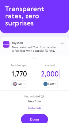 Paysend pakub kiireid, turvalisi ja soodsaid ülekandeid üle maailma. Saada raha enam kui 170 riiki madalate tasudega ja reaalajas vahetuskurssidega. Globaalsed maksed on Paysendiga lihtsad ja kiired, valmides minutitega.