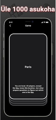 Iga mänguvoor on kordumatu elamus, mille teevad eriliseks sajad võimalikud sündmuste arengud ja stsenaariumid. Teid ootab ees strateegiline lahing, kus jagatakse rolle: enamikust saavad "kohalikud" ja üks salajane mängija kehastub "spiooniks". Kohalikud teavad salajast asukohta, samas kui spioonil puudub igasugune info – tema ülesanne on sulanduda ja varjata oma teadmatust. See pakub nii kiireid, lühikesi raunde kui ka pikemaid ja strateegilisemaid seansse. Soovid mängule lisada isikliku puudutuse? Loo oma ainulaadsed asukohad, mis pakuvad veelgi rohkem üllatusi ja naeru!